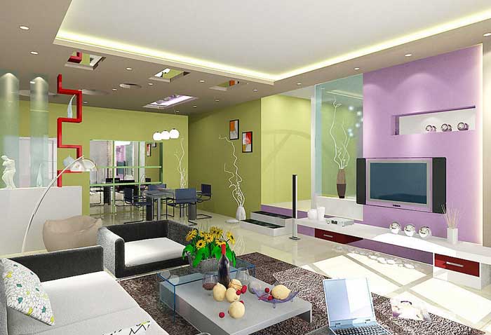另外,為了突出表現(xiàn)各個分區(qū)、燈光布置也是大有文章可做。客廳有不同的分區(qū):沙發(fā)、視聽、酒柜、活動區(qū)、通道等,這些地方的燈光設(shè)計原則以營造多個局部并使整體協(xié)調(diào),通過不同的明暗手法,營造適合于不同心景的燈光效果。另外,對于客廳的燈光設(shè)計上,有許多人喜歡采用間接照明。喜歡它是因為間接燈光在氣氛營造上能發(fā)揮獨特的功能性,營造出不同的意境。它的光線不會直射至地面,而是被置于壁凹槽或天花背后或是壁面裝飾的背后,光線被投射至墻上再反射至地面,柔和的燈光仿佛輕輕地洗刷整個空間溫柔而浪漫。